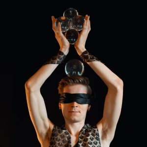 Mou hlavní specializací je elegantní kontaktní žonglování se skleněnými koulemi, které vytváří dojem iluze a plynulého pohybu bez jazykové bariéry.
